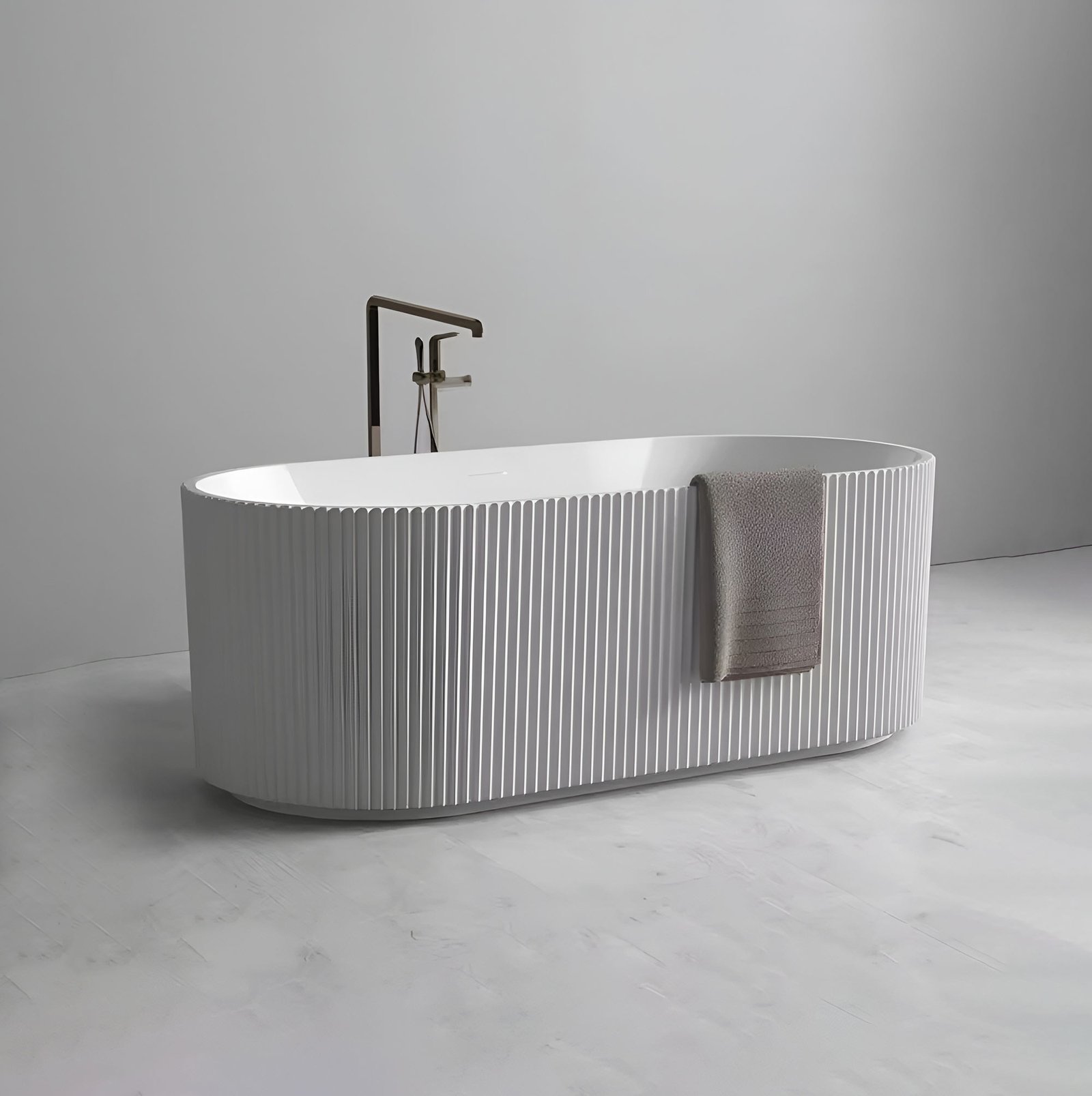 Die einzigartige Außenstruktur mit vertikalen Rillen macht die Wanne zum eleganten Blickfang.
